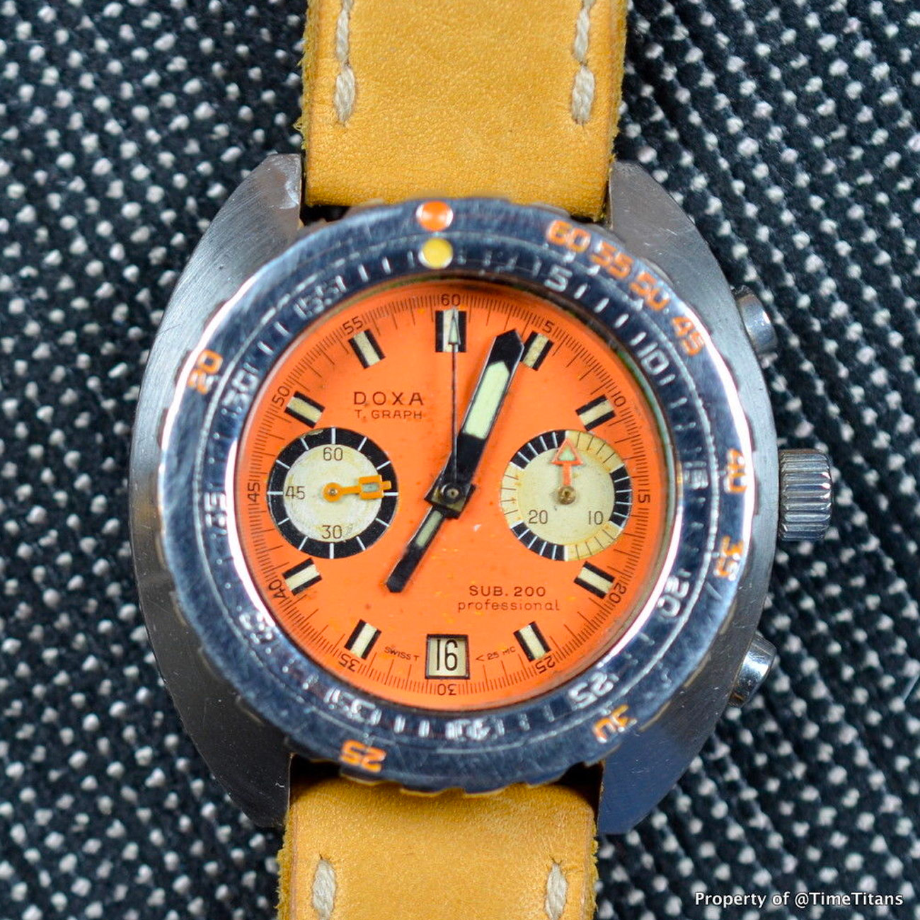 From the seller: These are extremely rare, with orange being even less common than black. Vaunted because of rarity and design, the unique hands and subdials are totally specific to this watch. It also nails the era it hails from 100%.