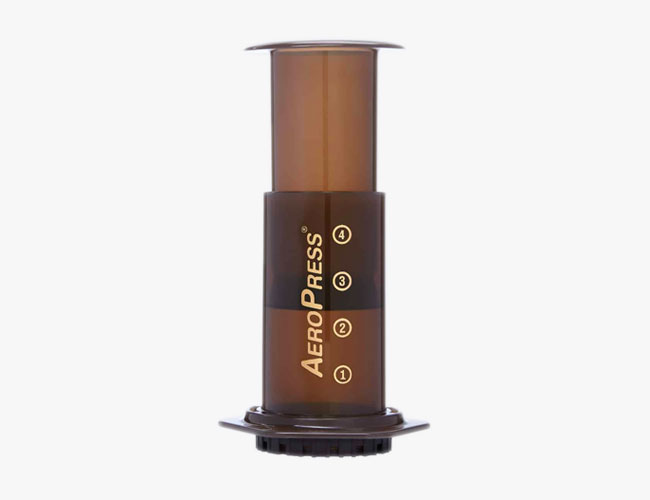 “The AeroPress is our number one manual brew recommendation — that desert island item. And the Porlex Mini Hand Grinder is the ultimate sidekick. It even fits all snug inside the AeroPress chamber, making it the optimal — and pretty damn cute — grab and go.”
