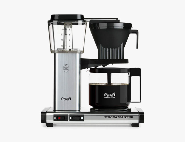 Effectively, this makes Coffee Supreme’s Midland Park operation part retail outlet, part brewing education center and a spot where you can, if you’re so inclined, get a cup of coffee. Of course, this also means the Midland Park location is slammed with an incredibly well-edited collection of coffee making paraphernalia. Multi-colored Moccamasters, various pour-over devices, Hasami’s stackable mugs and Porlex hand grinders abound — it’s a coffee nerd’s paradise. Here are three of McGarvey and Kyne’s favorite pieces of gear in the shop, and why.