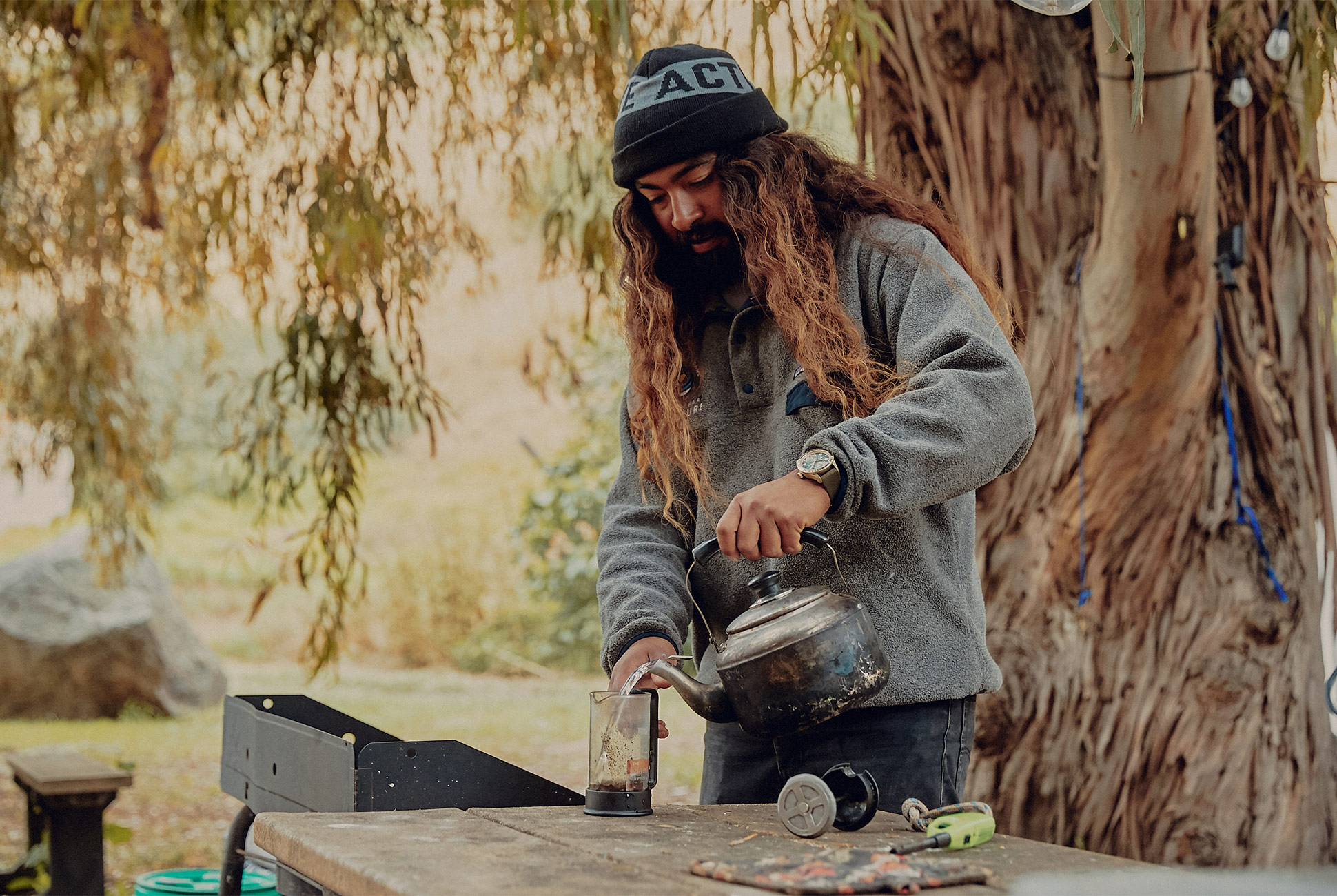 Step one: rolling off his cozy REI self-inflating camp bed at the guide campsite, brewing a cup of coffee, lacing on his trusty Timberlands, and taking a hike through the Scorpion Valley of Santa Cruz Island, where he spends most of this time.
