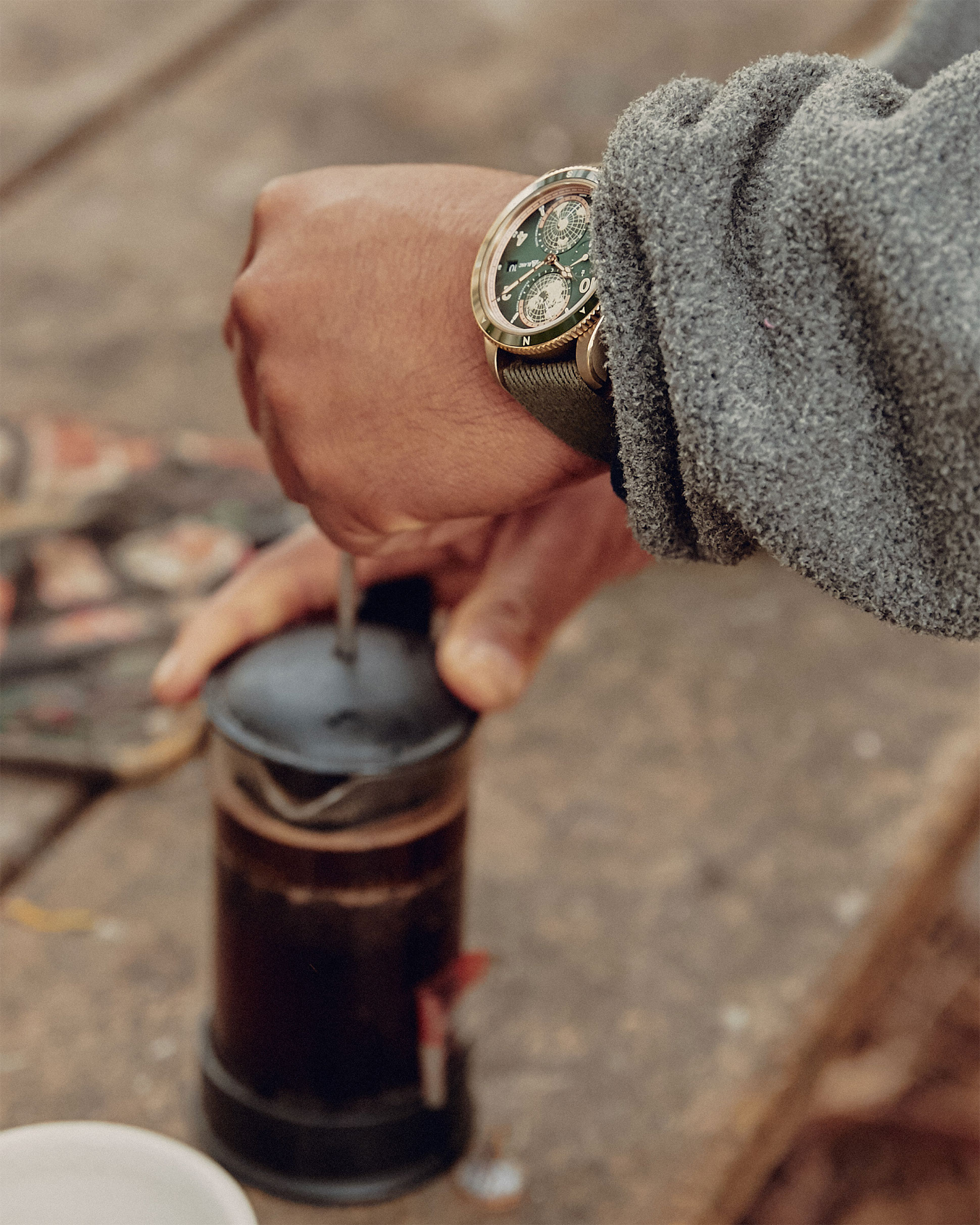 The 1858 Geosphere Limited Edition honors the Seven Summit mountaineering challenge, completed by climbing the highest summits on each of the world’s continents. Its bronze case and green dial look at home even during a sea level hike in the Scorpion Valley. No matter where you’re at, you can tell the time at Denali or Kilimanjaro (or Mont Blanc, perhaps) thanks to its world timer, which displays the time around the entire world via a beautiful dual-Lambert projection. Buy Now: $6,300