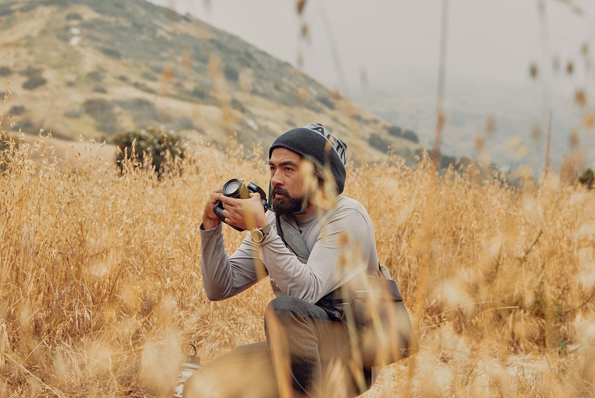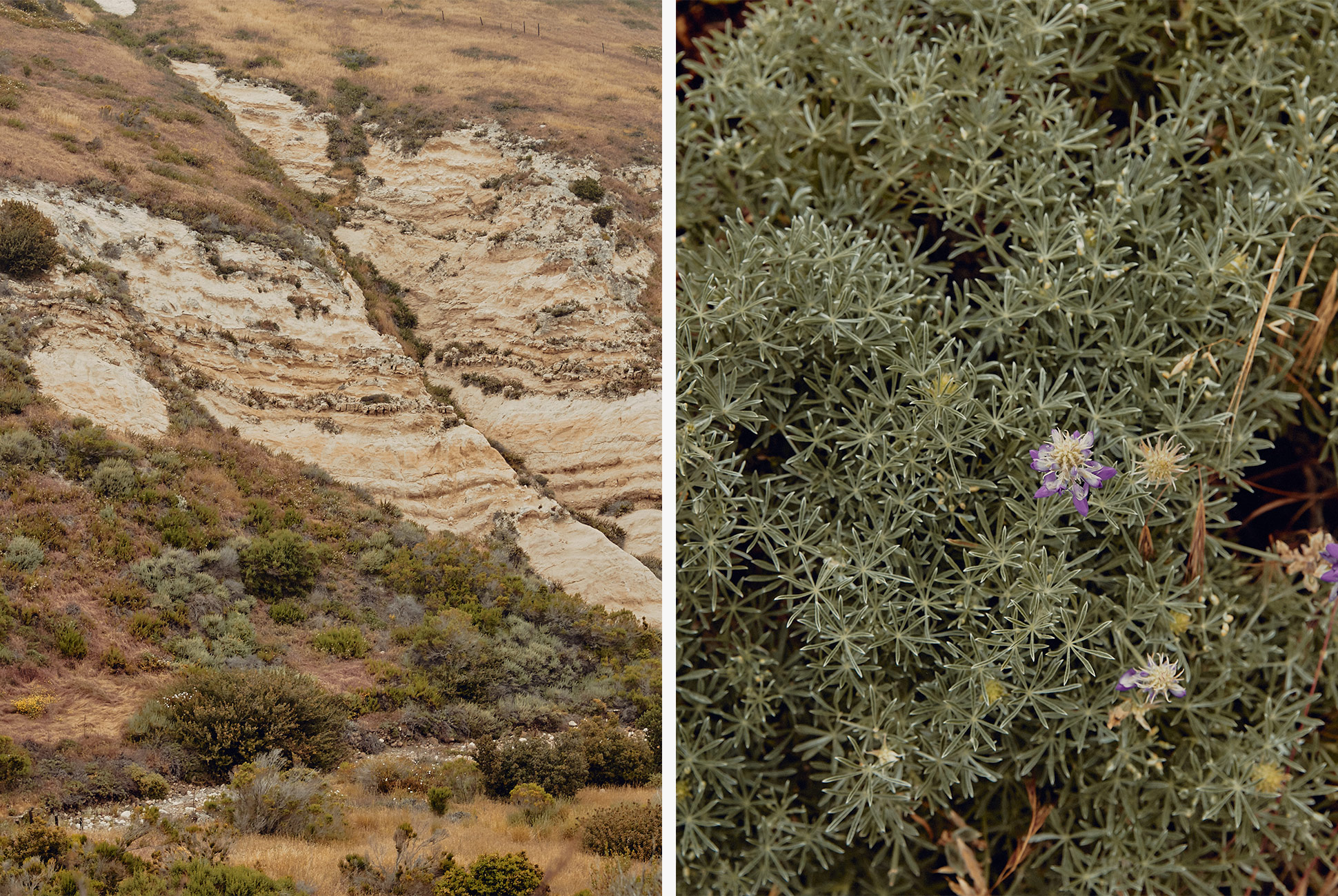 Chalott walks quietly along a dry creek bed rimmed with morning glories, through a green meadow, up hillsides of dry grass. Overhead, Devil’s Peak, the Channel Islands’ highest mountain, wears Pacific Ocean mist like a crown. He stops to photograph what looks like a massive dandelion, white with seeds ready to be blown away. “I love to shoot plants,” he says. “You capture a moment. They bloom and then they die. It’s never here more than once.”
