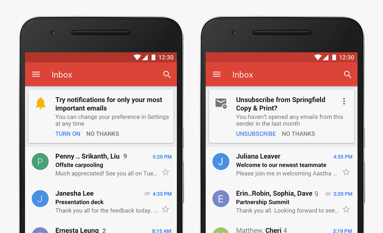 • High-priority notifications. This is a mobile-only feature. Because you probably get a heck of a lot more emails than you do texts, many of you probably turn off these push notifications. This new feature will only send you push notifications for emails sent by people who you correspond frequently. This way you don’t get bombarded by notifications and can still stay on top of important threads.