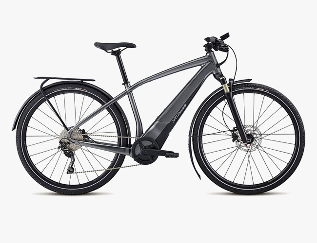 Best Commuter E-Bike: Specialized designed the Turbo Vado to be a bike first. That means the mechanical system is fully integrated, with internally routed cables and a concealed motor. It’s sleek and uncluttered, and for the most part looks like a normal bicycle. The 40-cell battery and belt-driven motor, which together power the Turbo Vado to speeds up to 28 mph, is fully incorporated into the downtube of the E5 aluminum frame. Components include an 11-speed Shimano cassette and front and rear Tektro Zurich custom hydraulic disc brakes. There are also built-in extras, made possible by the electronic system, like a removable handlebar-mounted display and a brake-responsive tail light integrated into the rear rack.