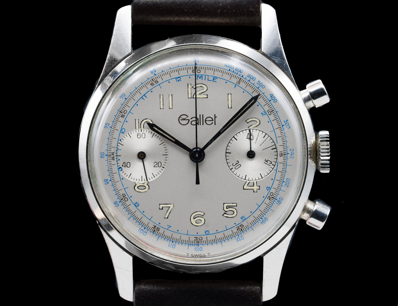 What we like: Gallet chronographs are increasingly becoming hot watches on the vintage market, but while most references from the brand have seemed to escalate in price, this relatively simple Multichron 45 is still fairly accessible. The handsome white dial appears to be in great shape with its blue accents remaining crisp and legible. The hand-winding movement inside keeps the 35mm case slim, and thus this is a chronograph you can easily wear with a shirt and jacket.