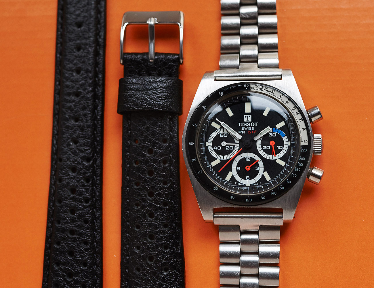 What we like: Tissot’s PR 516 range of sports watches were made over many years and encompassed many different types of watch, but the chronograph model is particularly noteworthy. This one features a handsome tachymeter bezel made from bakelite, a hand-winding movement and, of course, a stainless steel bracelet. The whole thing looks to be in immaculate shape and well worth its sub-$2,000 asking price.