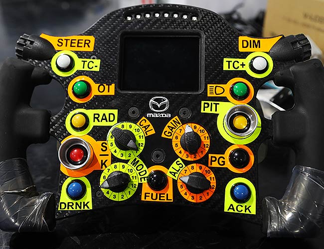 With a set of shifter lights, two shifters on the back, 11 buttons, four scrolls, four dials and one LCD screen for basic readouts, there’s a lot to look at.