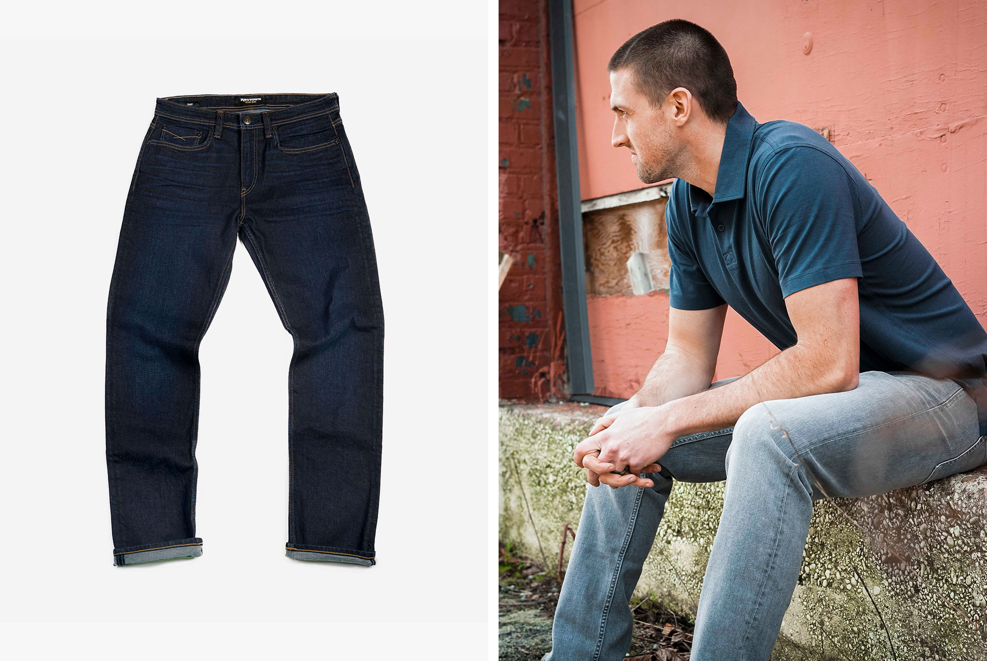 Its comfort-forward signature Decade Denim is made from a premium Italian yarn that’s then infused with four-way, dynamic stretch and made with the strongest fibers in apparel design today. Placed in the Sharp Denim fit, the result is a pair of perfectly worn-in jeans that balance mobility and style. Slim, but not too skinny, they can go with anything to make an ideal everyday jean.