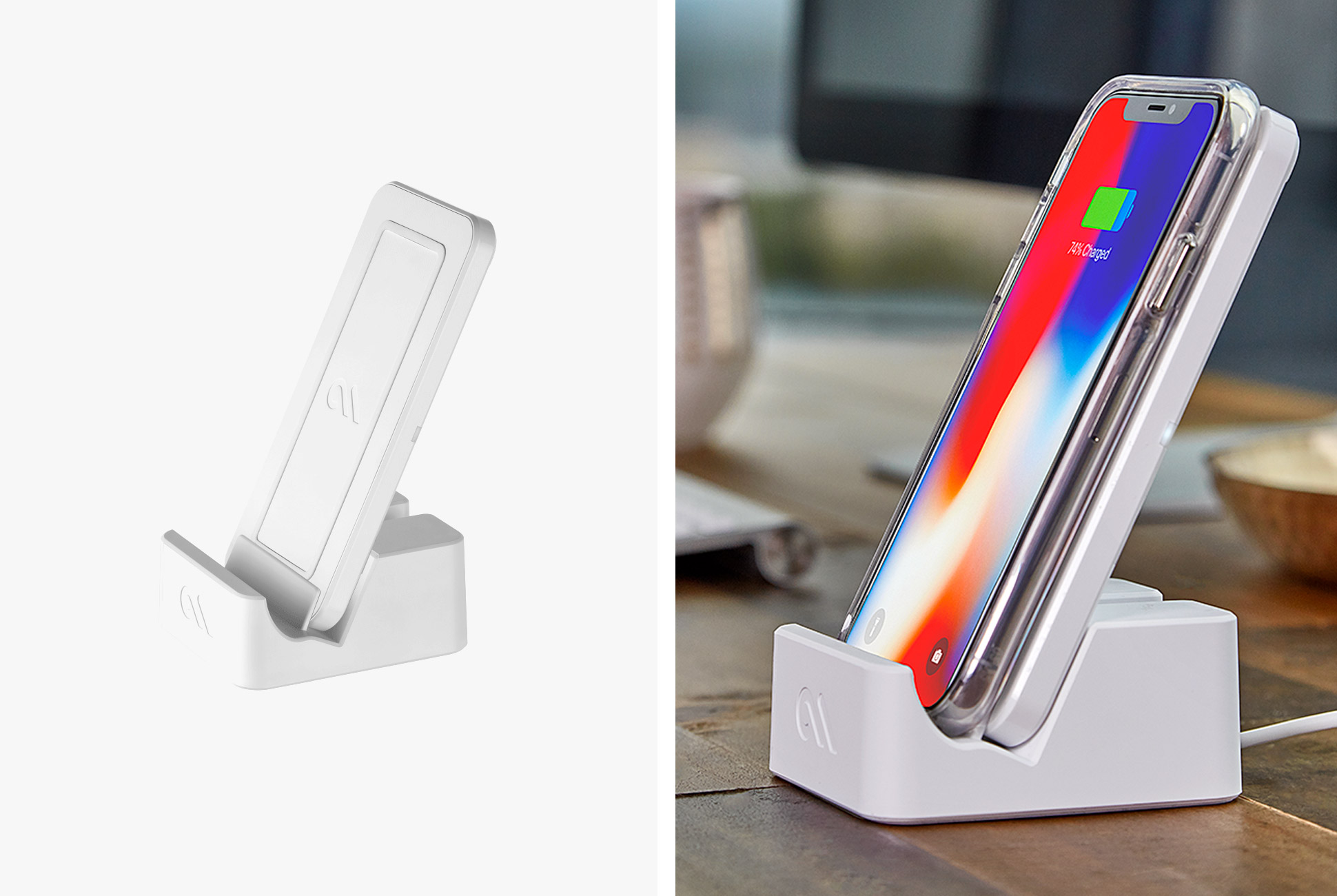 Case-Mate’s wireless fast charger for iPhone X comes with an optional stand so that you can easily text and take calls while charging.