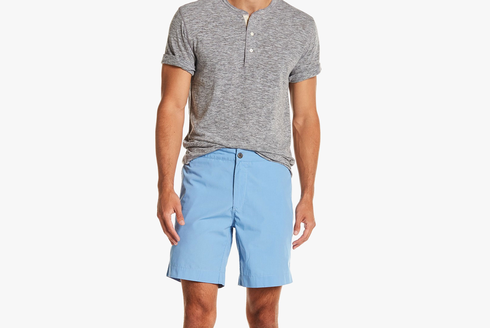 This understated short has a nine-inch inseam and is made from a cotton-recycled poly blend with a touch of stretch for comfort. It borrows design elements lifted from traditional shorts like a fly-front zipper, a button closure and side pockets so you can wear them to dinner without looking like you just came from the beach. What’s more, they’re quick-drying, odor repellent and feature easy-draining pockets.