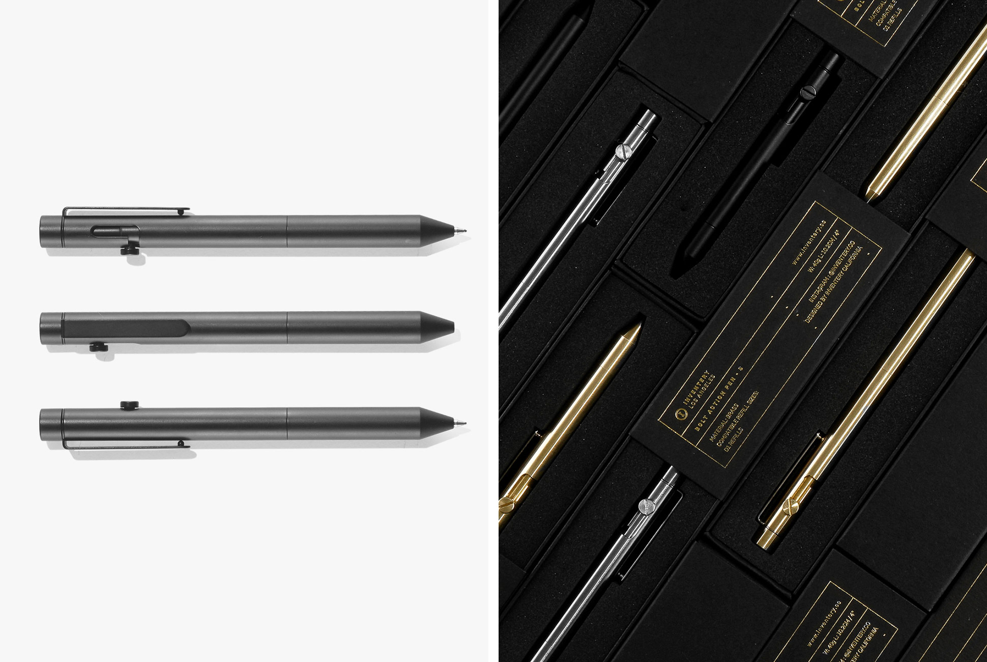 The right pen can better your day one little moment at a time, which is exactly what Inventery aims to provide with the Bolt Action Pen. Precision machined from raw brass stock, the pen is tactically elegant, with a satisfying, high-speed trigger that just feels good when you use it. It comes in three size options and fits a variety of refills, including the Pilot G2 and Parker styles.