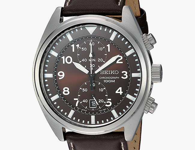 Save 54%: This chrono features a larger 42.6mm steel case with a Japanese quartz movement powering two sub-dials — a 60-minute counter at 12 o’clock, and a running seconds sub-dial at 6 o’clock, as well as a date window. The SNN241 has a brown dial with Hardlex crystal and a matching contrast-stiched brown leather band with double-locking clasp. It’s also water-resistant to 100m, so while it’s splash-proof, it’s best to switch to a trusty dive watch for serious water sports. — Oren Hartov
