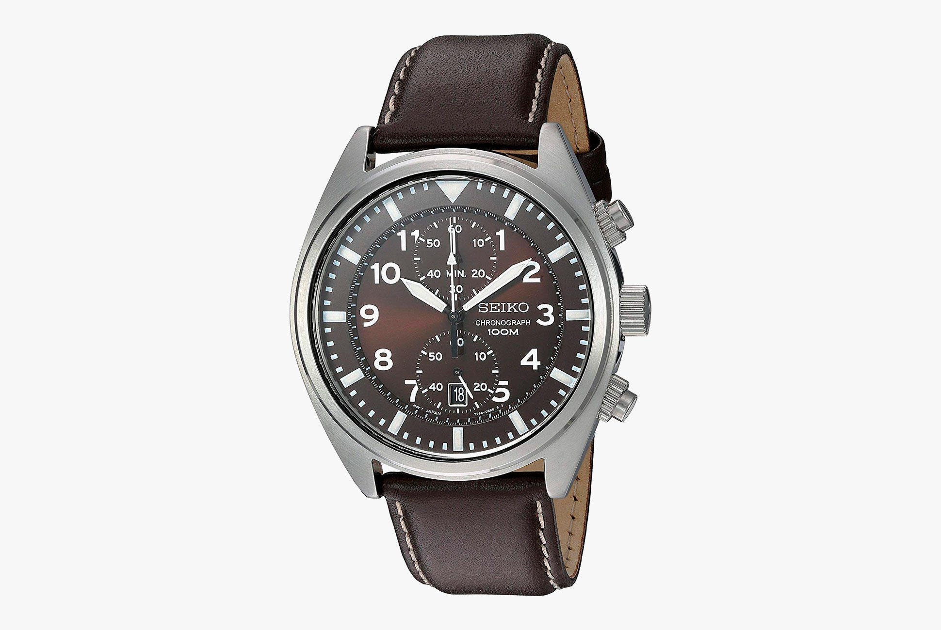 Save 54%: This chrono features a larger 42.6mm steel case with a Japanese quartz movement powering two sub-dials — a 60-minute counter at 12 o’clock, and a running seconds sub-dial at 6 o’clock, as well as a date window. The SNN241 has a brown dial with Hardlex crystal and a matching contrast-stiched brown leather band with double-locking clasp. It’s also water-resistant to 100m, so while it’s splash-proof, it’s best to switch to a trusty dive watch for serious water sports. — Oren Hartov