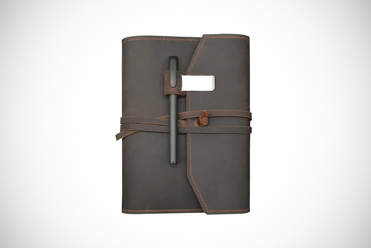 The Antique Handmade Leather-Bound Notepad by Moonster is as good as it sounds. In fact, we’ll stick our neck on the line and say this is probably one of if not the best-looking everyday journals for men on our list. It is wrapped in genuine buffalo leather with striking hand stitching down the spine. It offers an antique leather strap to keep it fastened.