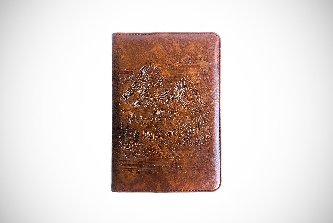 The mountain journal looks like a journal straight from the hands of an adventurous but pensive hero from the set of a Hollywood movie. The embossed design of mountain peaks on the soft synthetic faux leather makes this an aesthetically pleasing and rustic journal.