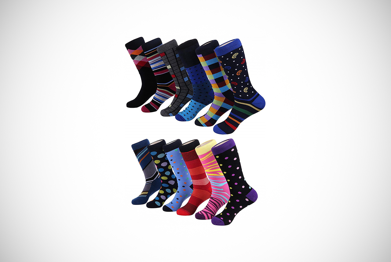 From colorful stripes, polka dots, and even animals these comfortable dress socks have certainly been designed for the bravest of men out there. They are machine washable, have a nice fit, and have reinforced heels and toes as well as ribbed cuffs to enhance an already high level of comfort.