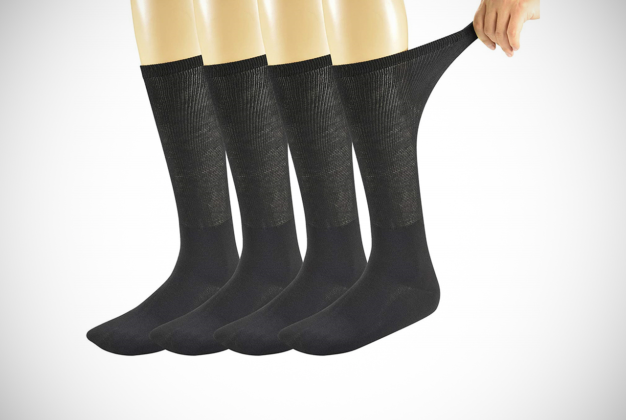 Designed for the elderly or those that suffer from foot or joint conditions or diabetes, the Yomandamor Bamboo Diabetic Dress Socks are made from a bamboo material that is known for being more breathable, not too tight, and can be stretched more easily over swollen legs and feet.
