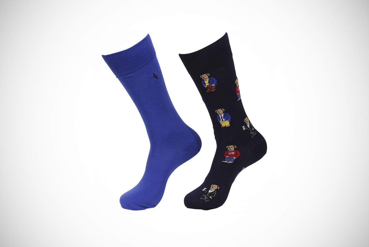 The ever-popular Ralph Lauren bear on your socks is certainly going to gain you the right type of attention and with this 2-pack of socks, you will get one pair covered with the bear stitched into the design and another standard Polo sock with the pony embroidered into the design as the other.