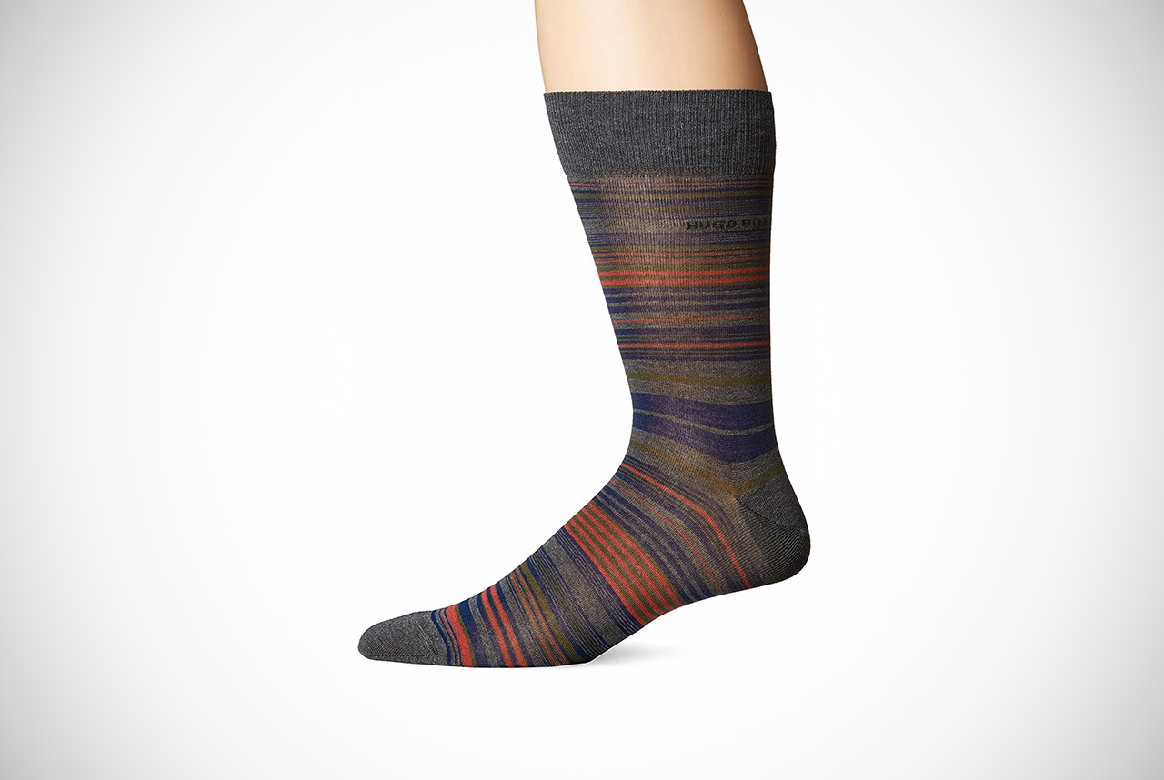 The Boss Hugo Boss Multistripe Mens Dress Socks is a good example of this as they are available in three different multistriped designs that look and feel great. Stylish without being overly bold, these socks are primarily made from mercerized cotton, have a reinforced heel, and will look great under the suit of your choosing.