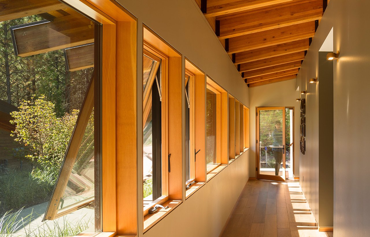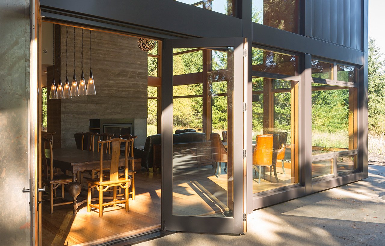 Other notable sustainability features of the Tumble Creek Cabin include its radiant floor heating; an Energy Recovery Ventilation System; energy efficient aluminum-clad wood windows and doors; and use of rustic materials, including stone, weathering steel, and reclaimed barn wood with modern detailing. Oh, and did we mention the house has its own electric car charging station?