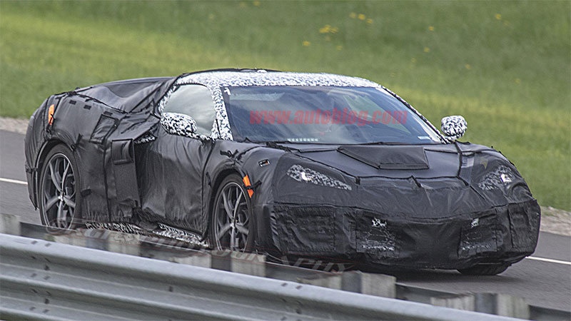 To that end, C8 body panels will be mainly fiberglass, laid over a spaceframe that’s mainly aluminum, and the initial coupe will launch with an evolution of the current 6.2-liter LT1 V8. The article says weight should be “a bit heavier than the current car’s roughly 3,500 pounds” (Chevrolet lists the base Stingray at 3,298 pounds), but horsepower should also climb to about 500, and CD expects the entry-level C8 to be quicker than an entry-level C7. The follow-up engine will be a 5.5-liter DOHC V8 with at least 600 hp that can spin its flat-plane crankshaft to 9,000 rpm, although the usable redline will be a few hundred rpm lower. Sometime after that, Chevy will roll out a twin-turbocharged version of that 5.5-liter, said to be worth around 800 hp.