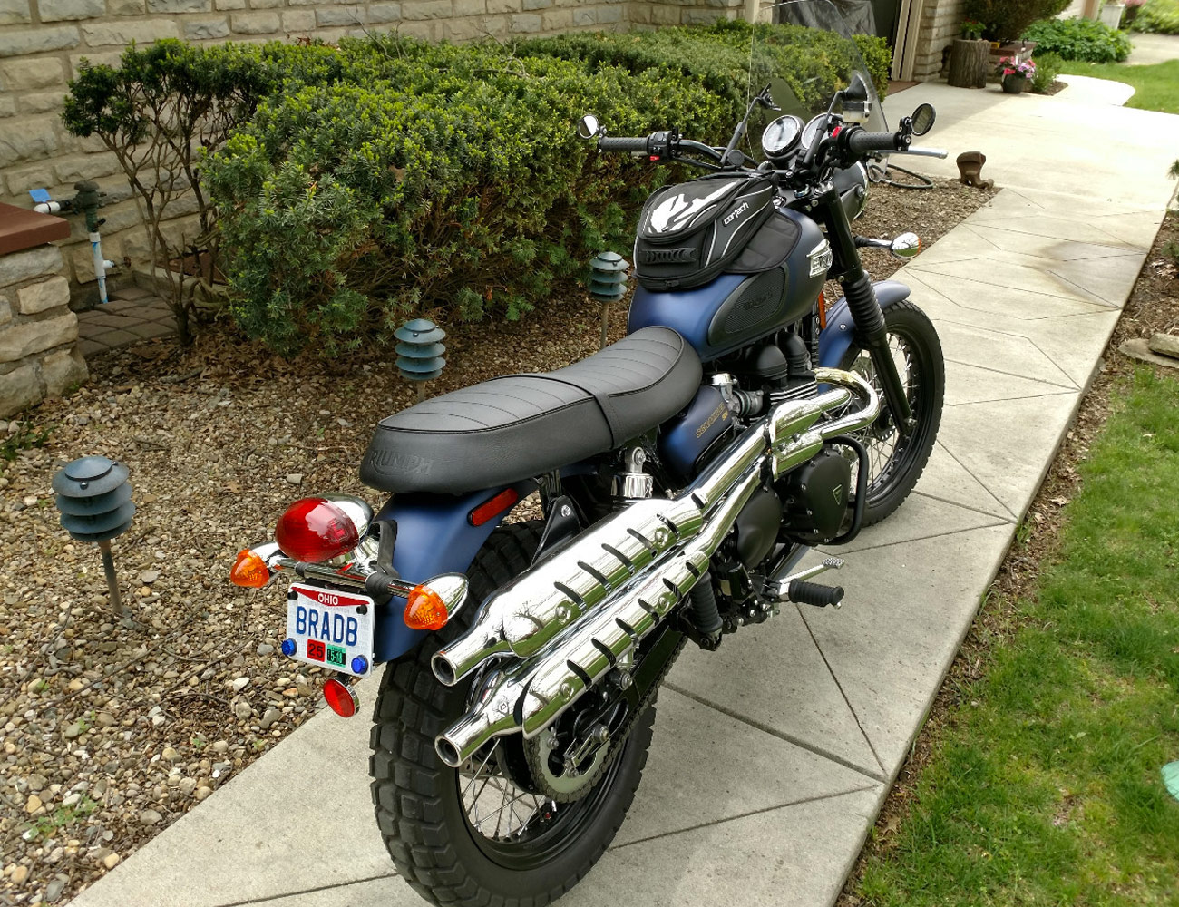 From the seller: “Offered is a 2016 Triumph Scrambler with only 70 miles on the odometer. This Scrambler has been fitted with factory engine case guard, short windscreen and bar end mirrors. The factory mirrors are wrapped and can be reinstalled if desired. Likewise, the factory bar ends. Included is the Cortech tank bag pictured.”