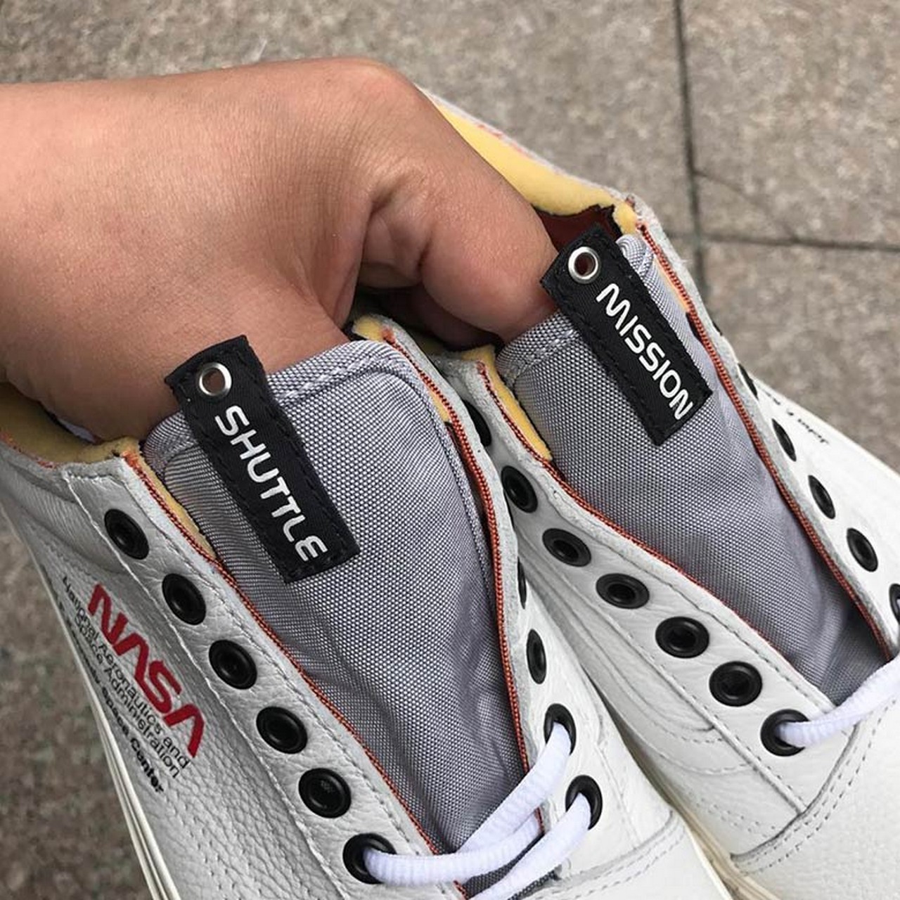 The white Vans x NASA Old Skool Sneakers you see here are part of the upcoming special release. Perfect for both aspiring astronauts and skateboarders, the kicks feature a tumbled leather upper with a removable USA flag at the heel, NASA branding on the external sides, exposed foam liner, a ridged midsole, and a space grey mesh tongue with black tabs that read “Shuttle” and “Mission” in NASA font.