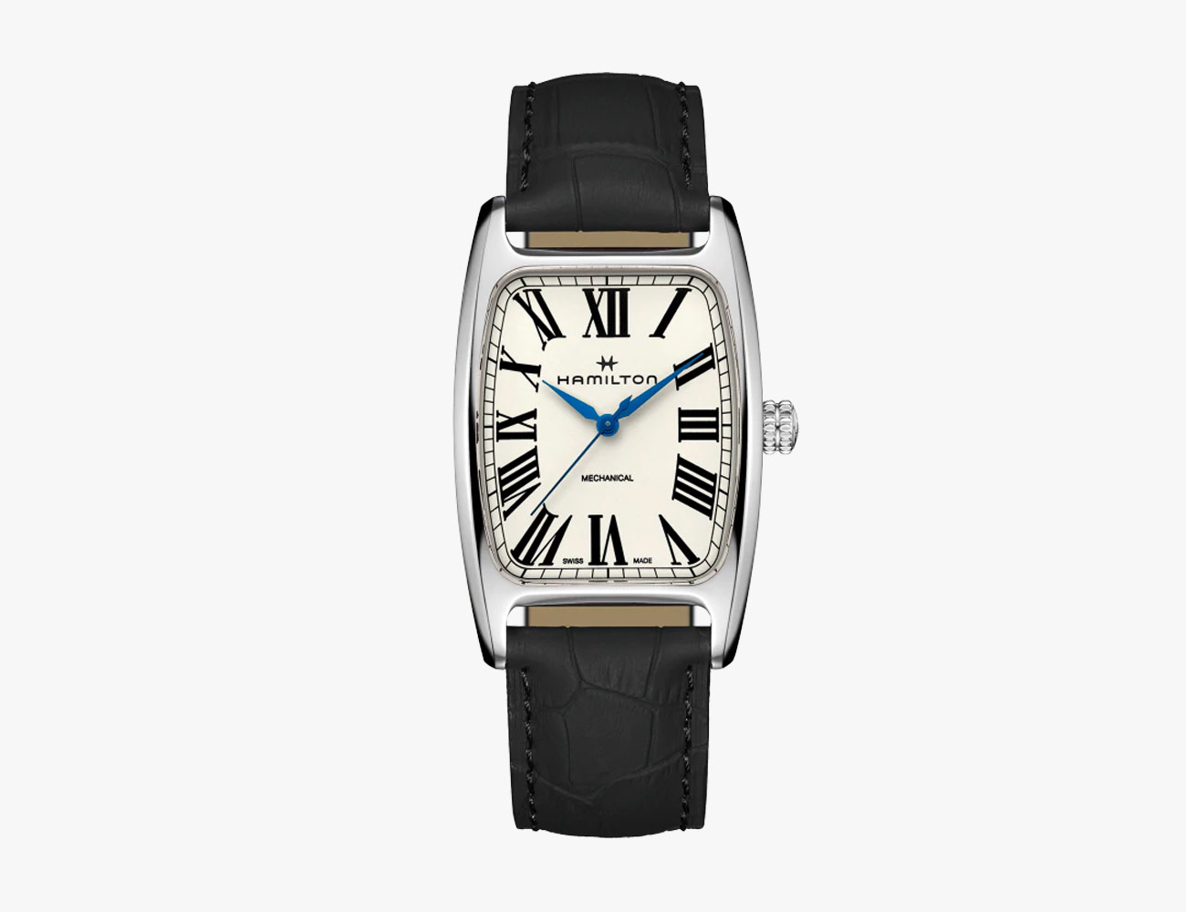 Granted, the Hamilton Boulton isn’t quite rectangular like the Tank — but that’s because it’s not trying to be the Tank. The Boulton was introduced in the 1940s when Hamilton was a prominent American watchmaker and elegant, elongated cases such as this were “in.” It’s been a part of the brand’s collection ever since. A quartz option is a bit cheaper, but we like it with a traditional-feeling, hand-wound movement, much as it would’ve had back in the day.