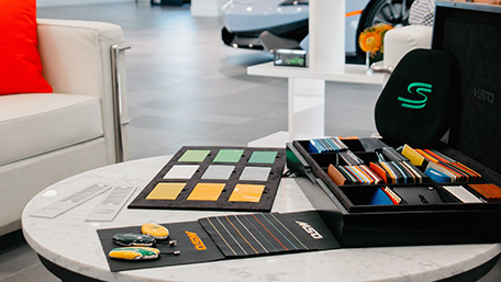 An MSO briefcase on the table in front of me provided abundant starting points: exterior paint swatches, carbon fiber colors, stitch types and thread colors, laser-etched accelerator pedals, different finishes for the rather large key, a sample of the 24-carat gold engine bay heat shield. The configurator explodes the magnitude of choice, presenting 15 menus, each commanding a multitude of possibilities for component particulars such as exterior paint, stripe patterns, wheel lock nut color, aero blade finish, and rear wing end plate color. After that come 21 “Yes/No” options for items such as a fire extinguisher, MSO Push-to-Drink system, parking sensors, and floor mats. McLaren said the process usually takes about 1.5 hours, yet that must represent an average of extremes; analysis paralysis is real, so you either go in knowing what you want, or you spend four hours making love to six different shades of periwinkle.