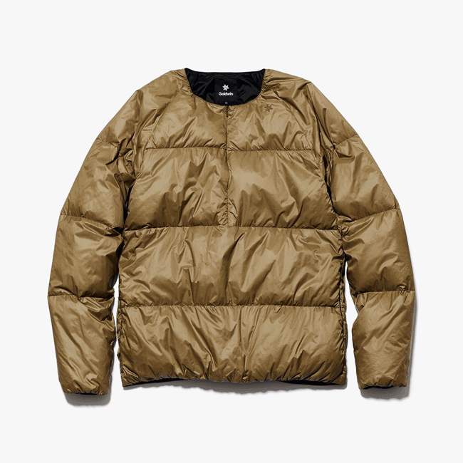 The Crew Neck Down Sweater is a unique piece that combines the warmth of a down jacket with the styling of a crew neck sweater. This look is further enhanced by the nearly invisible half-zipper on the front. This allows you to wear it over a turtleneck, tee or under a hi-tech shell jacket. It’s a Goldwin staple product that maximizes the potential of layering styles.