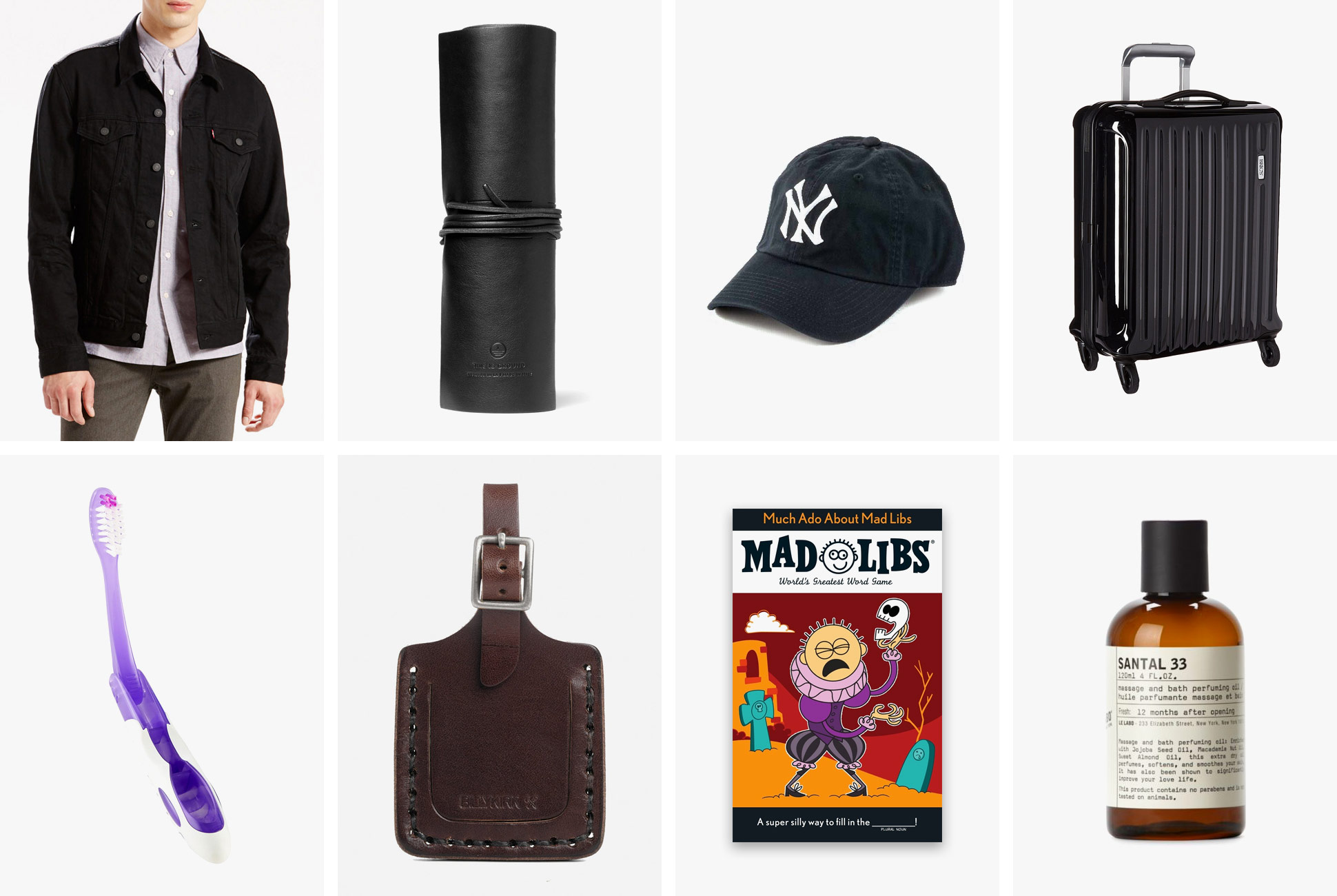 “If you’re lazy when you travel (I am), everything needs to serve two purposes. This suitcase is a capable carry-on, but also doubles as a small seat. The denim jacket is a great layer for a variety of destinations, but it also elevates an otherwise laid-back travel uniform. Small leather goods like the lifestyle roll and luggage tag double as helpful organizational tools and elevated details. Body oil is great for perfume, moisturizer, quick hair treatment and a slew of other things. Mad Libs? They’re great for travel-partner-bonding and passing the time when inevitably delayed at the airport.”
