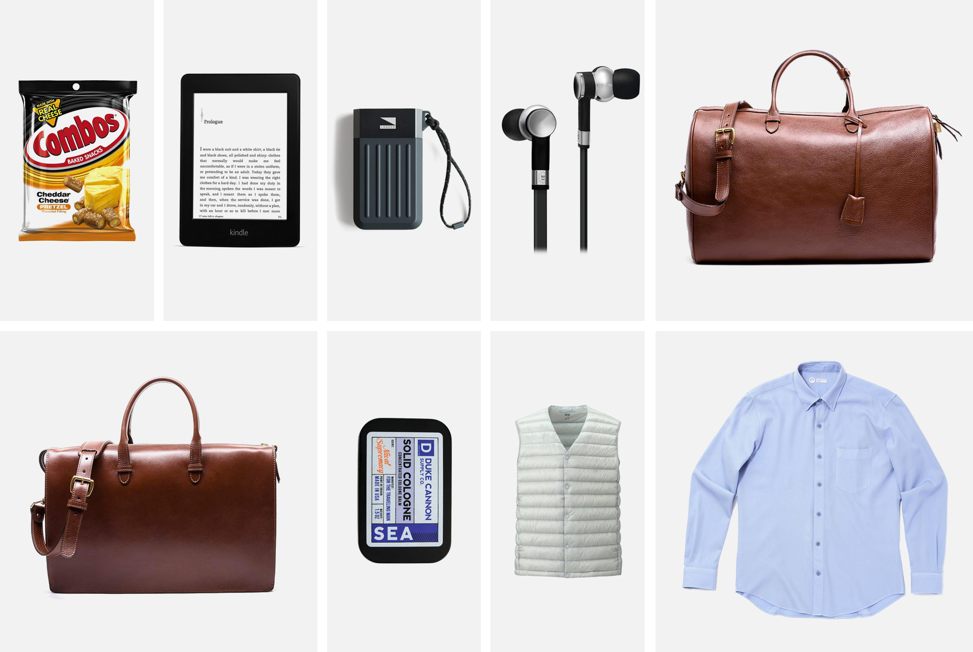 “When I travel, I like to be outfitted perfectly but efficiently. I can store roughly a million books on one little, beautiful tablet, saving space. The Outlier shirt is a great piece — it can be worn casually or under a blazer (often both on the same trip). Also, I get cold on airplanes; the Uniqlo vest is almost completely weightless but super warm, plus I can also pop it under a blazer for a snappy chilly-evening look. I’m a plugged-in earphone holdout, not only because my M&D buds are too gorgeous to part with. Speaking of, the Lotuff bag combo take the top spot in terms of beautiful things I own; it helps that they’re stupendously functional too. Beyond that, since I often travel for work, I need to be presentable, professional and powered up even when I’m jet-lagged — that’s where the cologne and charger come in. That Lander is a beast; it holds enough charge to amp up my phone a couple times and it’s well-designed to boot. And I always buy Cheddar Cheese Pretzel Combos at the airport because Cheddar Cheese Pretzel Combos are the best Combos.”