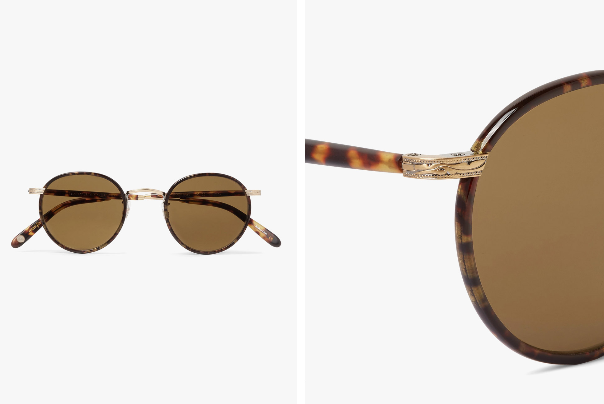 These round-frame sunglasses are appropriate for any special occasion. The matte tortoiseshell acetate frames feature gold-tone accents and brown lenses. Far from activewear or beach wear, these are as classy as it gets.