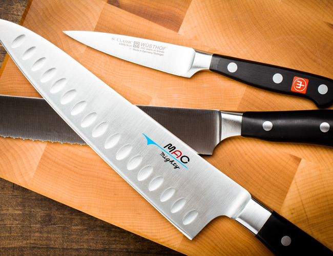 Steel: Steel is an alloy composed of iron and carbon. The amount of carbon in a piece of steel directly correlates to hardness and inversely correlates to durability. Due to a difference in forging techniques, Japanese steel blades contain much more carbon than German blades, making them harder, but also more brittle. Because Western-style steel is relatively softer, it’s capable of holding an edge longer and doesn’t need to be sharpened quite as often as Japanese blades do.