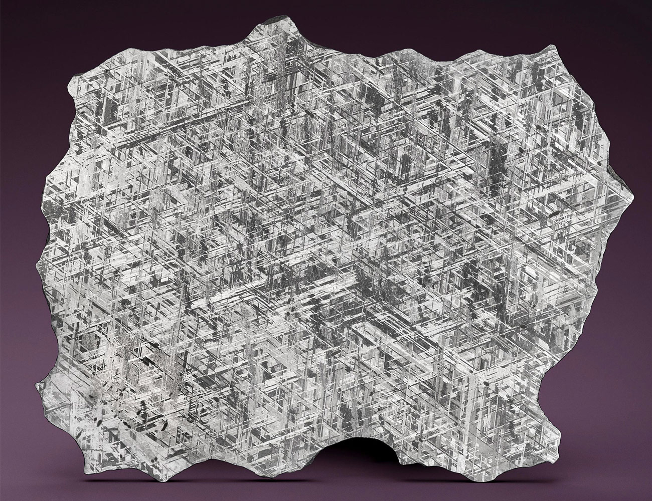 There are different kinds of meteorites with different compositions, but those like the Gibeon and Muonionalusta that are best for decorative purposes are mostly iron and nickel. The markings that characterize the distinctive meteorite look are called Widmanstätten patterns, and their presence alone suggests an extraterrestrial origin. This is because the crystalline structures require special conditions to grow in this particular way — specifically, cooling at a very slow pace over millions of years. While people can certainly fake or imitate the look, the actual process cannot be artificially reproduced in a laboratory due to the time requirement.