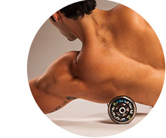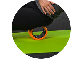 Technique: To work the thoracic spine, lie in your back and position the foam roller at the bottom of the rib cage. Put your hands behind your head to support it. Lift your hips off the ground and roll forward on the roller until it’s at your shoulder blades, then back, repeating four times. With the roller at the bottom of the shoulder blades and your hips back on the ground, slowly bend your torso to the left and the right four times, creating a dragging motion across the muscles. Repeat the entire cycle, rolling from the bottom of the shoulder blades to the top of the shoulders.