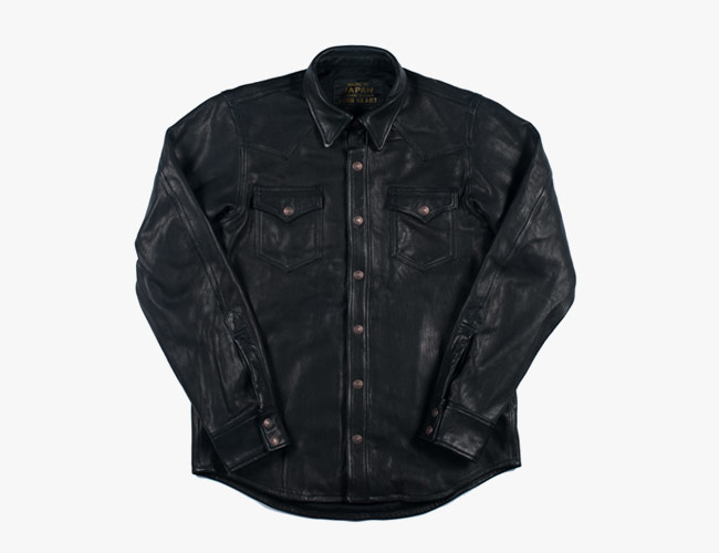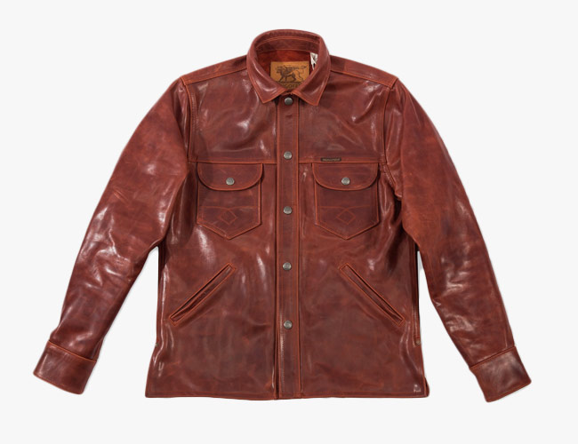 The heavy shirt jacket is made in Portugal from aniline-tanned horsehide. The design features two chest pockets, welt hand pockets and brass buttons. Sizes are limited and the brand only produced 30 pieces.